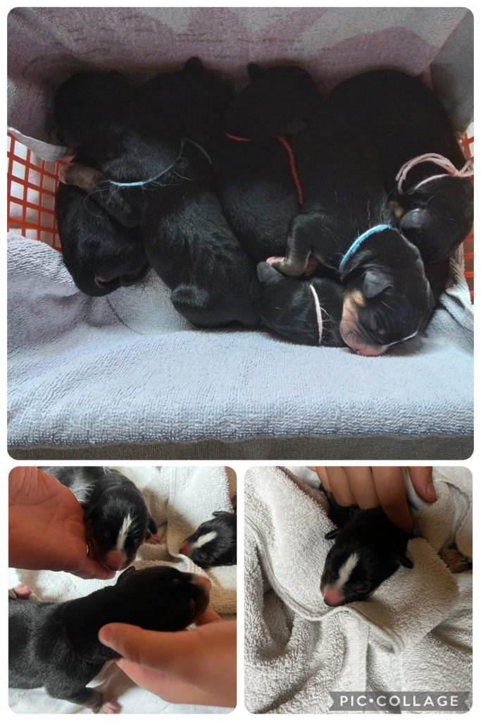 Unsere 7 Zwerge (4 Rüden/ 3 Hündinnen) haben das Licht der Welt erblickt. Den Kleinen und Mama Paula geht es sehr gut.